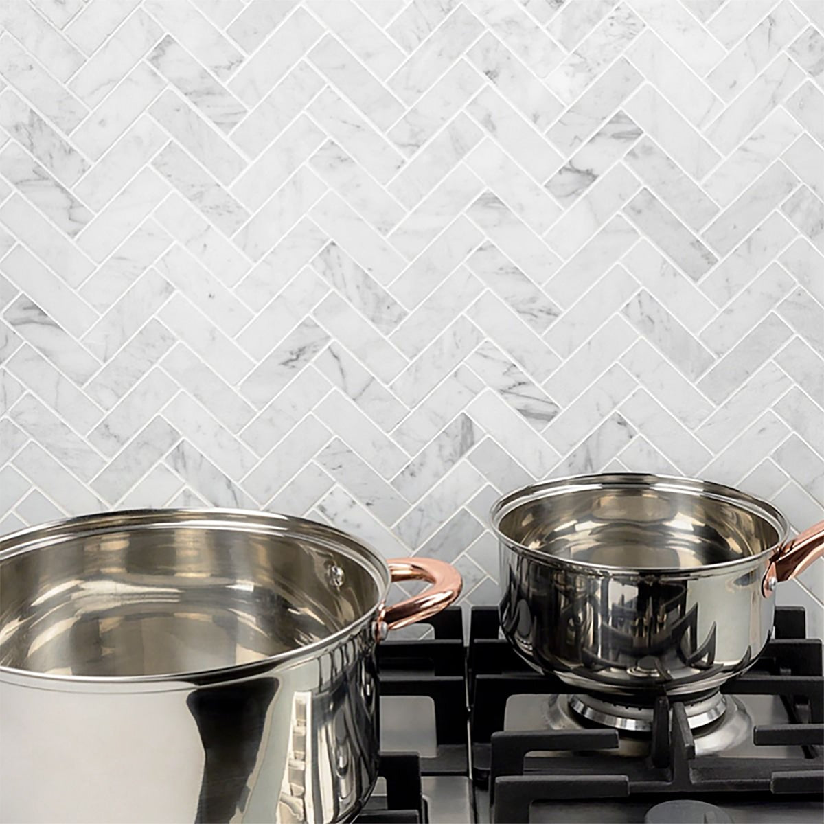 When you seek a unique twist on the herringbone pattern, consider the White Carrara Honed 5/8x6 Herringbone Marble Mosaic. The elongated shape creates a dynamic visual effect, making it an exceptional choice for accent walls or statement floors.
