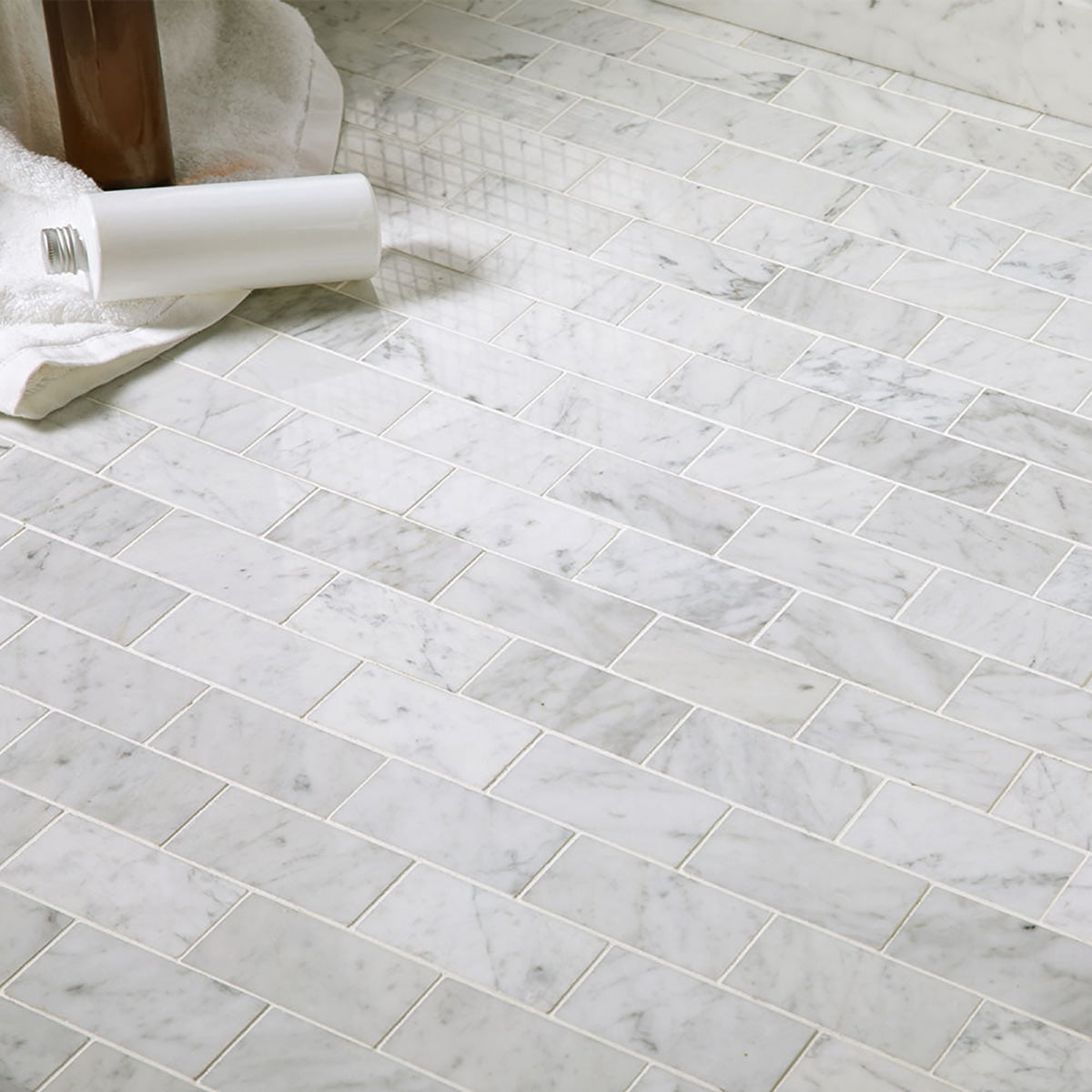 Classic Charm: White Carrara Polished, 2x4 Brick Marble Mosaic