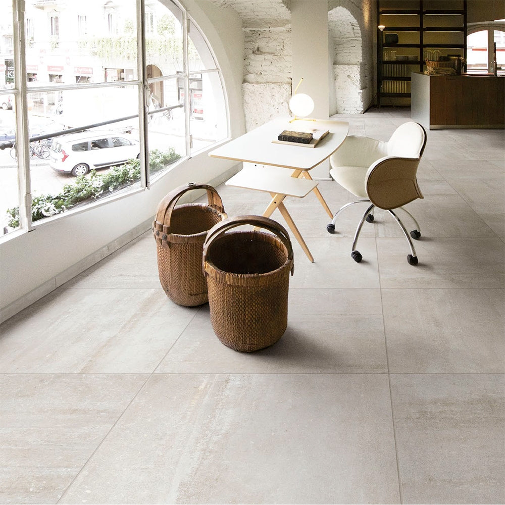 Ark Ivory Matte 24x24 Porcelain Tile offers a softer interpretation of the cement look. The gentle ivory color and matte surface bring warmth and elegance to your interior. It's perfect for creating serene and welcoming spaces, from bathrooms to bedrooms.