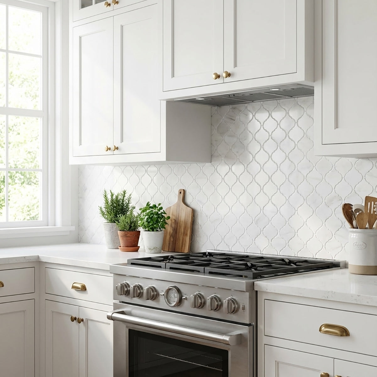 Add a touch of elegance with Bianco Dolomiti Polished Lantern Arabesque Marble Mosaic. The polished finish and arabesque shape create a captivating and sophisticated look, perfect for accentuating walls, backsplashes, or shower floors. This marble mosaic adds a unique design element to your space, enhancing your interiors with its refined beauty and timeless charm. Transform your design with the luxurious appeal of this exquisite marble mosaic.