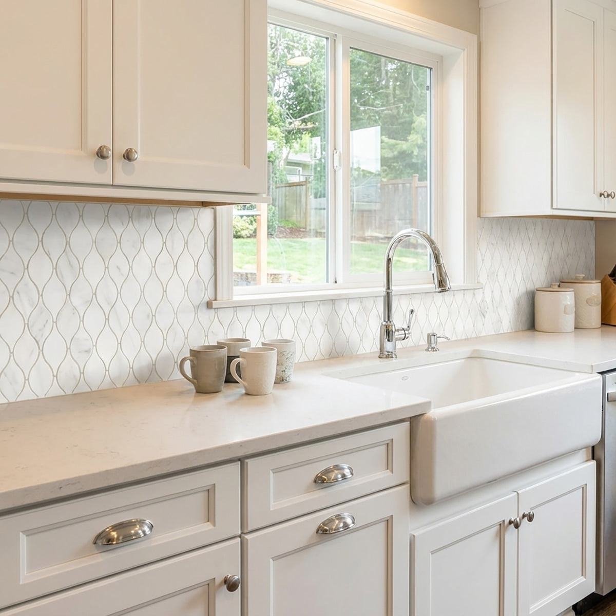 Elevate your design with the timeless elegance of Bianco Dolomiti Polished Long Arabesque Marble Mosaic. The polished finish and intricate arabesque pattern create a captivating look on walls, backsplashes, or shower surrounds. This marble mosaic brings a touch of sophistication to your space, enhancing your interiors with its classic charm and refined beauty. Transform your design with the luxurious appeal of this exquisite marble mosaic.