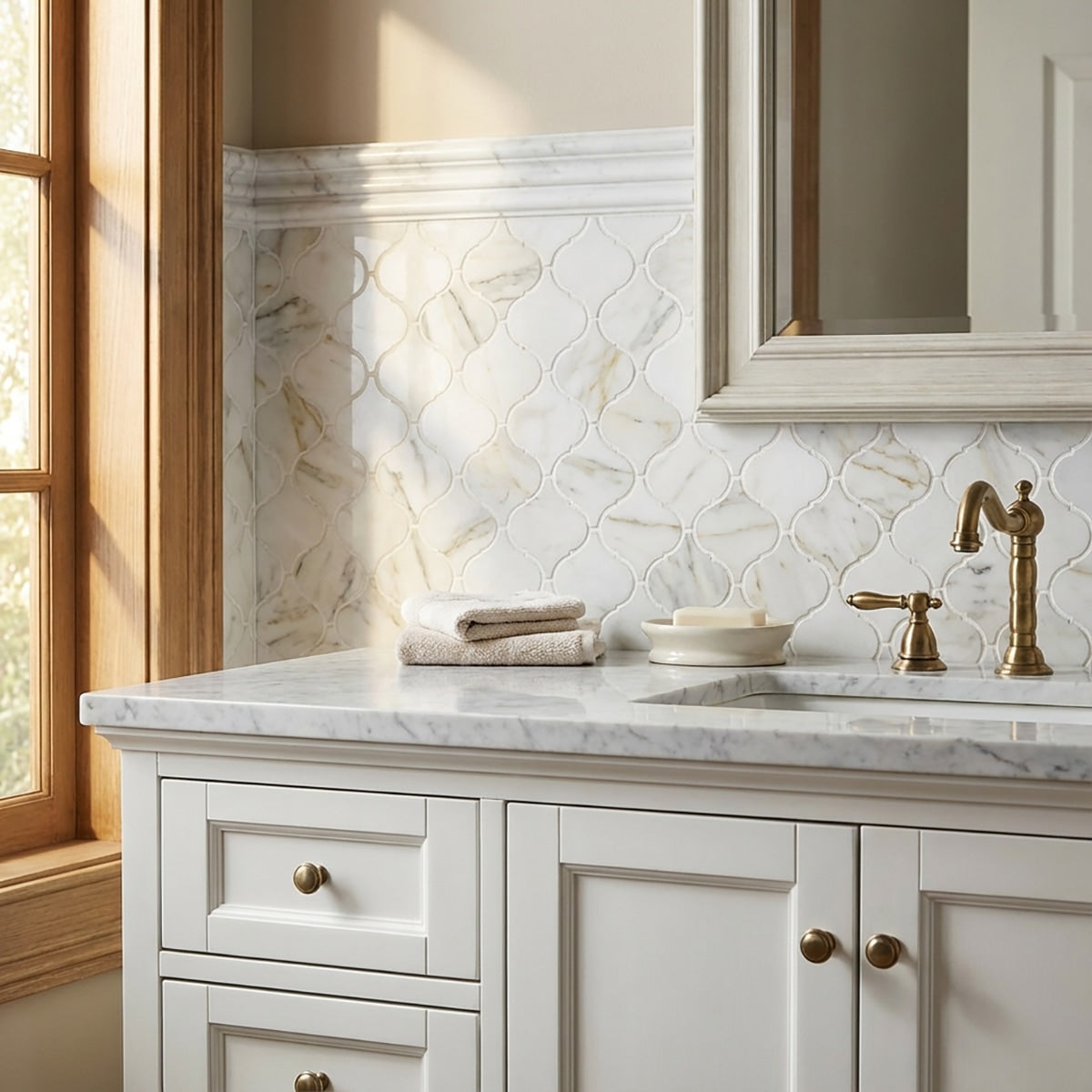 Create a captivating focal point with the Calacatta Polished Arabesque Marble Mosaic. The polished finish and arabesque shape add a touch of romance, making it an excellent choice for backsplashes, walls, or floors. This exquisite marble mosaic redefines elegance with its timeless beauty and sophisticated design, perfect for enhancing both traditional and modern interiors. Embrace the allure of Calacatta marble and elevate your space with its enchanting charm.