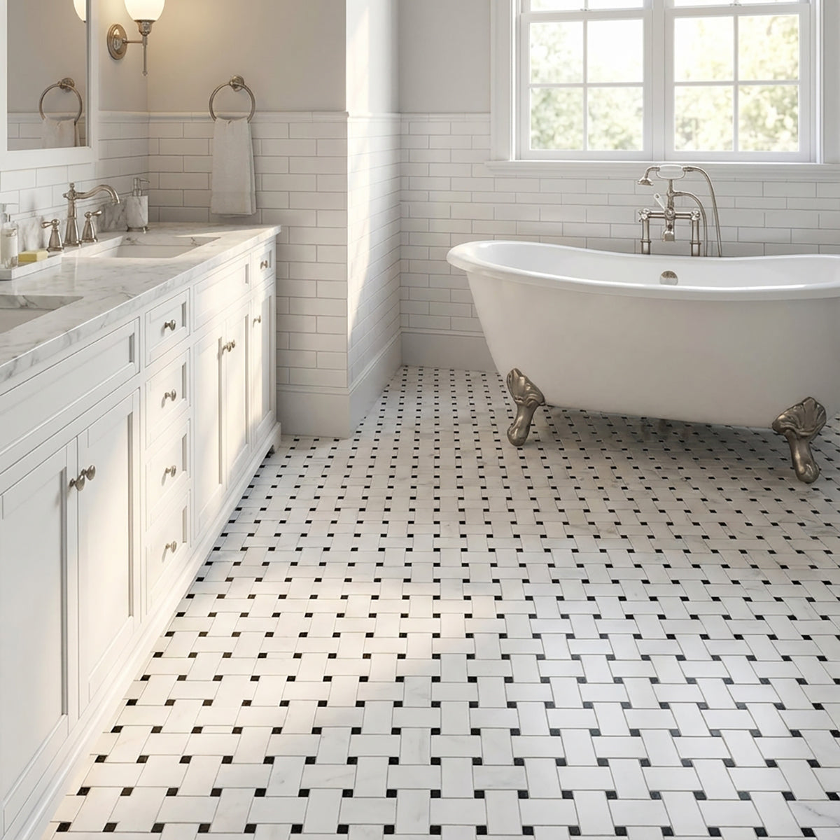 Transform your space with the sophisticated design of Bianco Dolomiti Honed 1x2 Basket Weave Marble Mosaic. The honed finish and basket weave pattern bring a classic and elegant touch to walls, floors, or backsplashes. This versatile marble mosaic achieves a timeless and cohesive look, enhancing your interiors with its refined beauty and enduring charm. Elevate your design with the luxurious appeal of this exquisite marble mosaic.