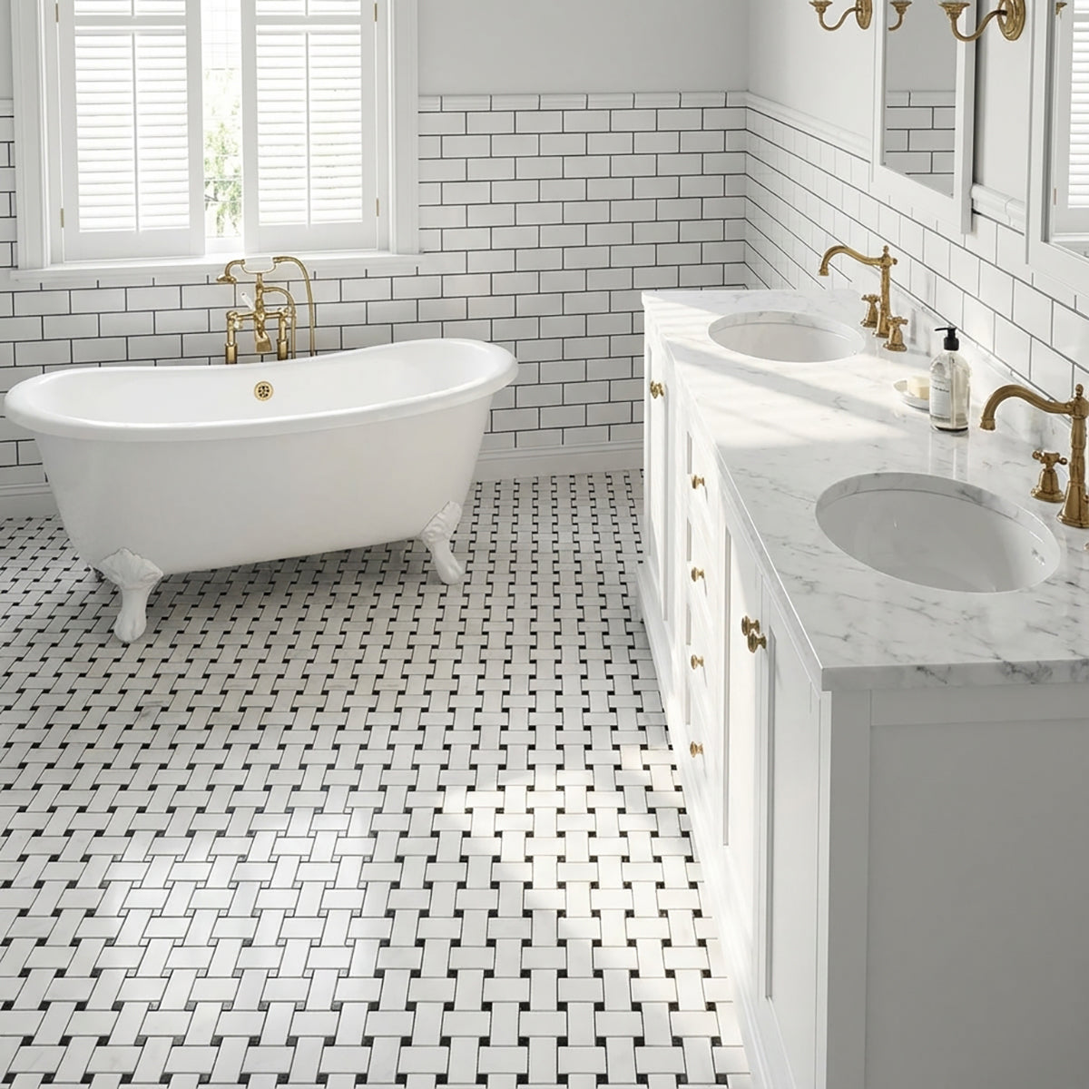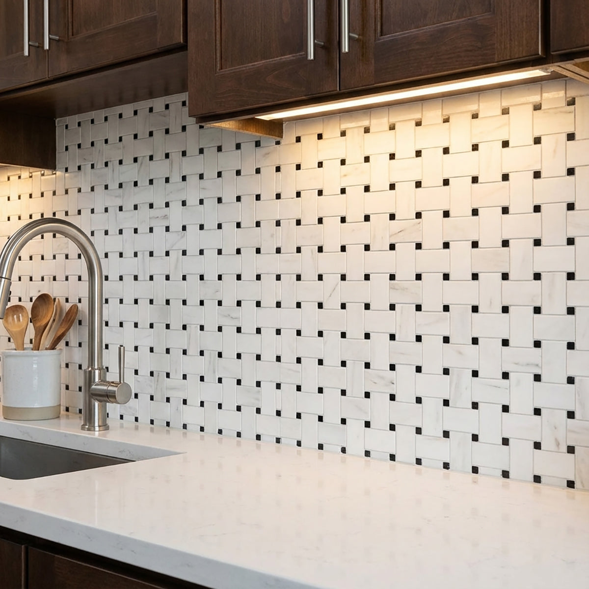 Enhance your design with the intricate appeal of Bianco Dolomiti Polished 1x2 Basket Weave Marble Mosaic. The polished finish and basket weave pattern bring a touch of classic elegance to your walls, floors, or backsplashes. Perfect for creating sophisticated and timeless interiors, this marble mosaic elevates your space with its refined beauty and enduring charm. Transform your design with the luxurious feel of this classic marble mosaic.