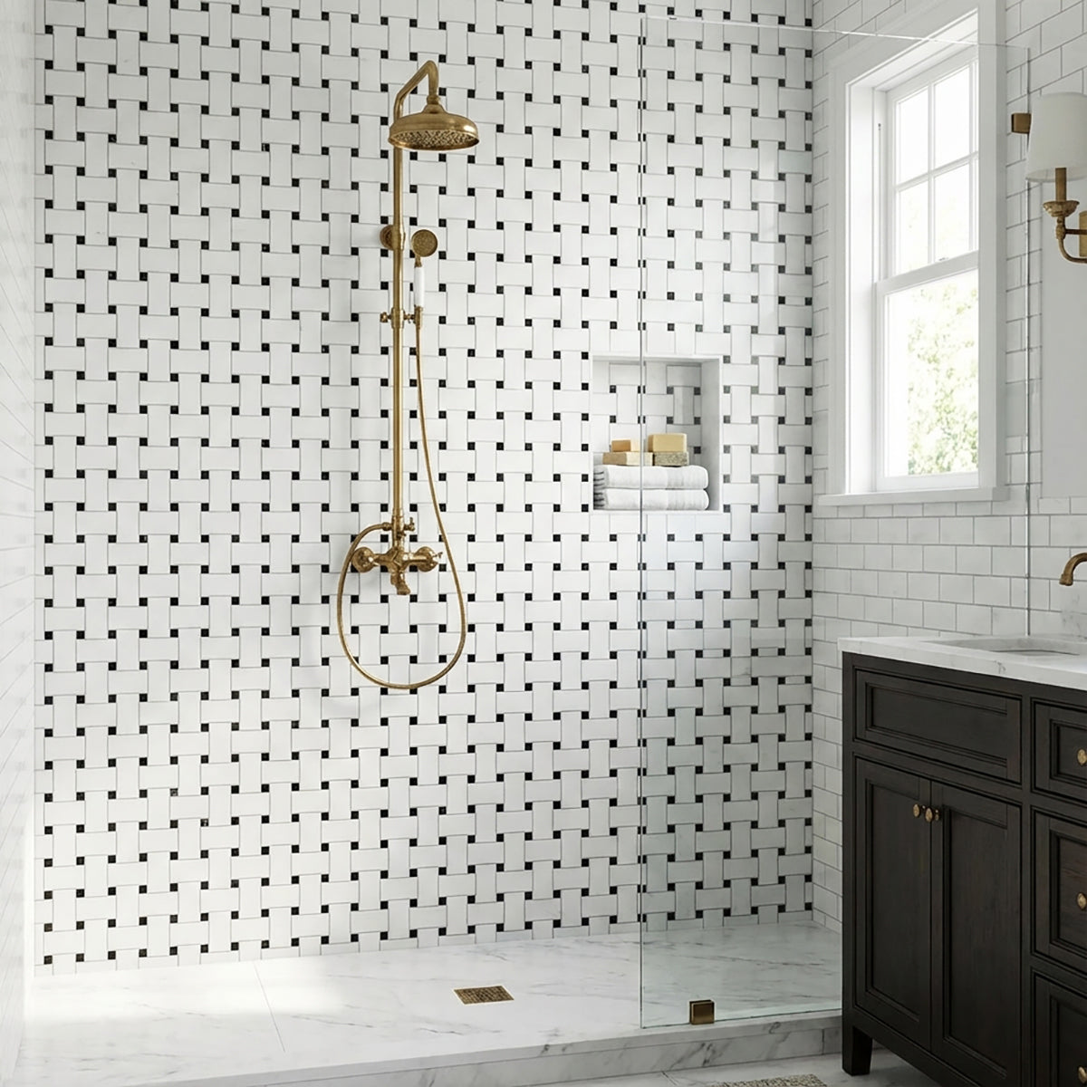 Enhance your space with the classic appeal of Thassos Polished 1x2 Basket Weave Marble Mosaic. Its polished finish and quality marble make it a versatile choice for various design styles.