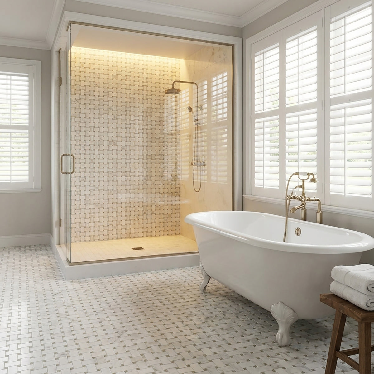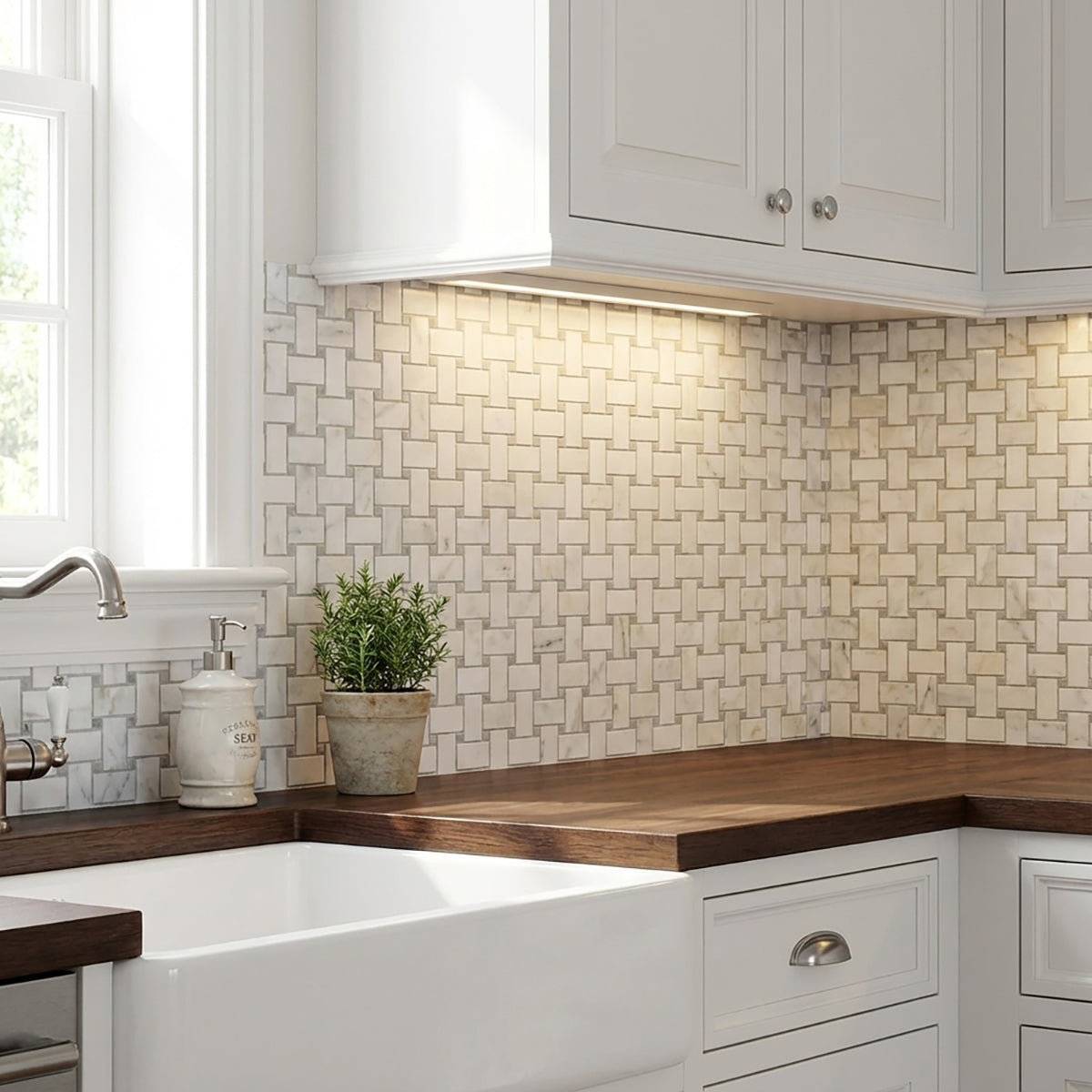 Add a touch of elegance to your space with our White Carrara Honed Basket Weave W1 Marble Mosaic. This exquisite marble mosaic features a honed finish and a classic white carrara color, creating a timeless look. Whether used on floors or walls, it adds sophistication and charm to any interior.