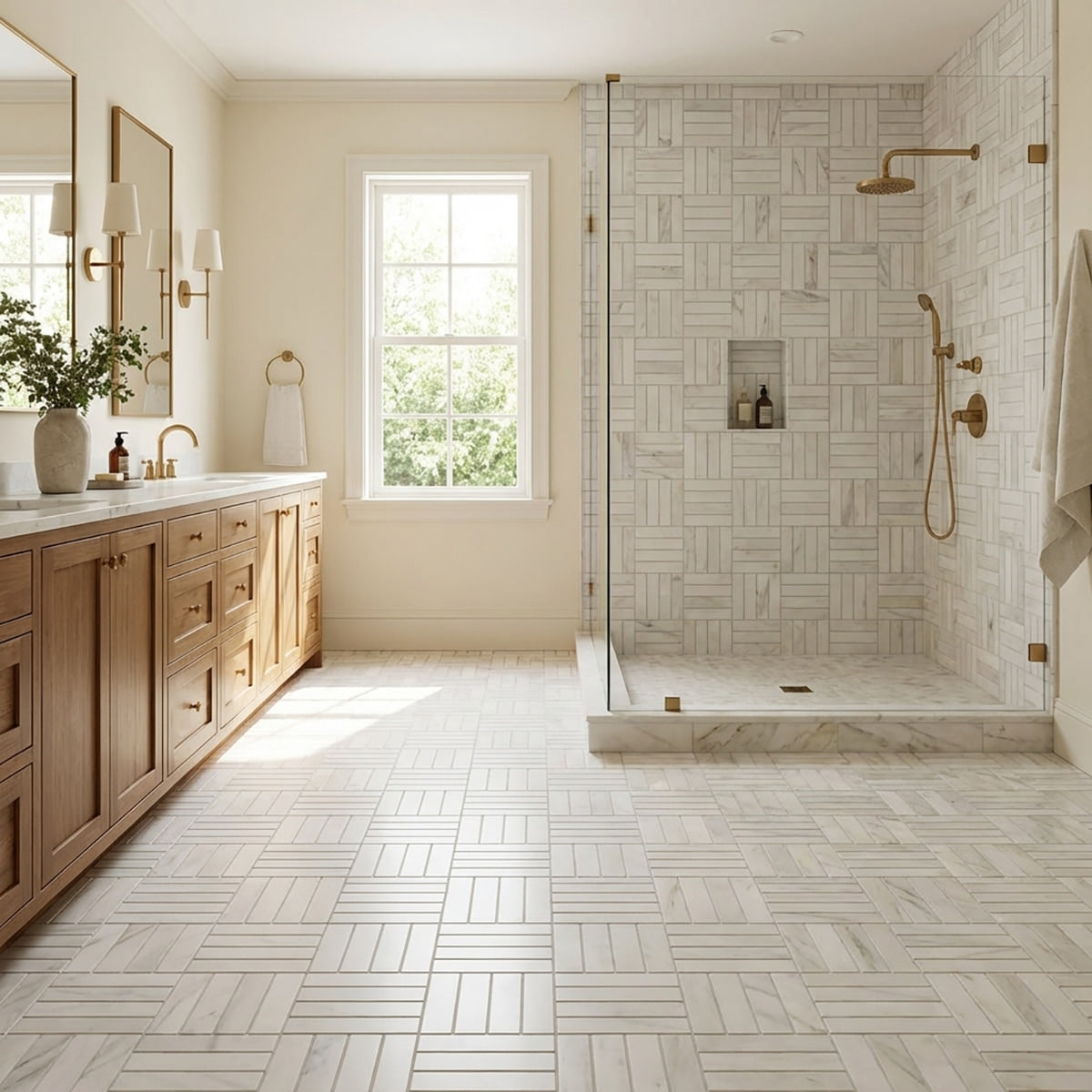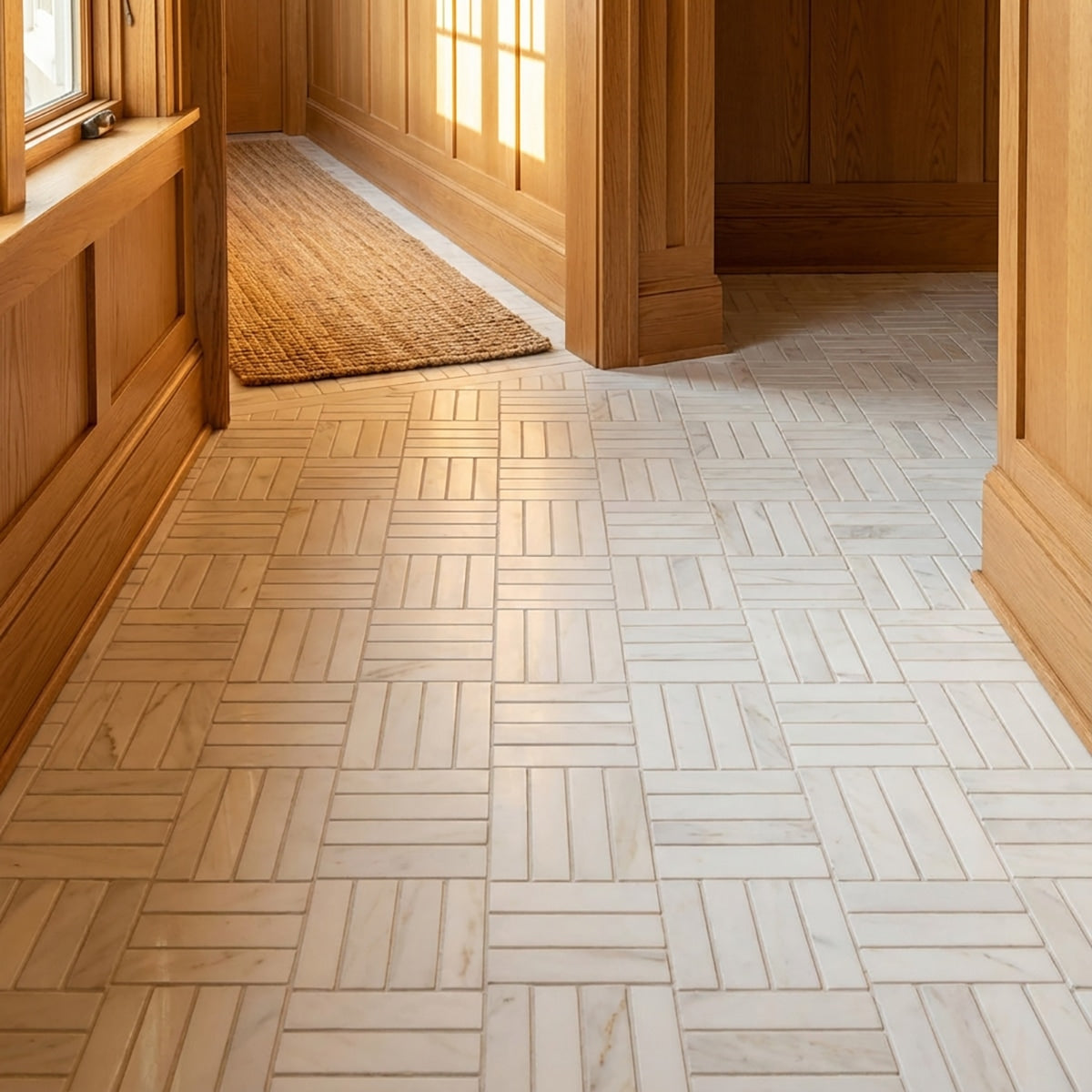 Enhance your interior with the timeless elegance of our Bianco Dolomiti Honed Stacked Brick Marble Mosaic. Featuring a honed finish and a classic stacked brick pattern, this mosaic tile adds sophistication and charm to any space. Whether used as a backsplash, accent wall, or shower surround, it creates a stunning focal point that will elevate your design.