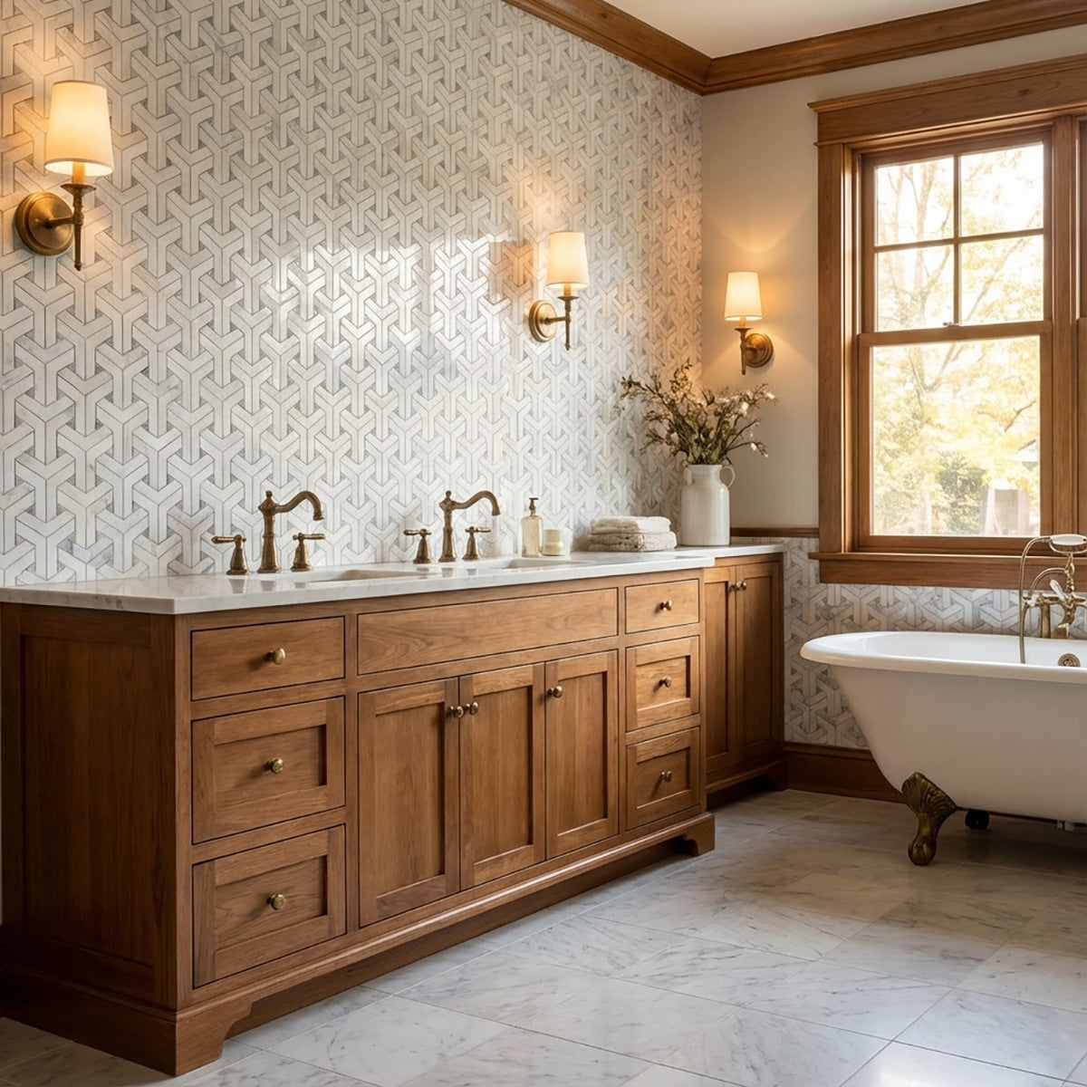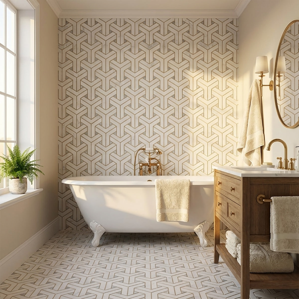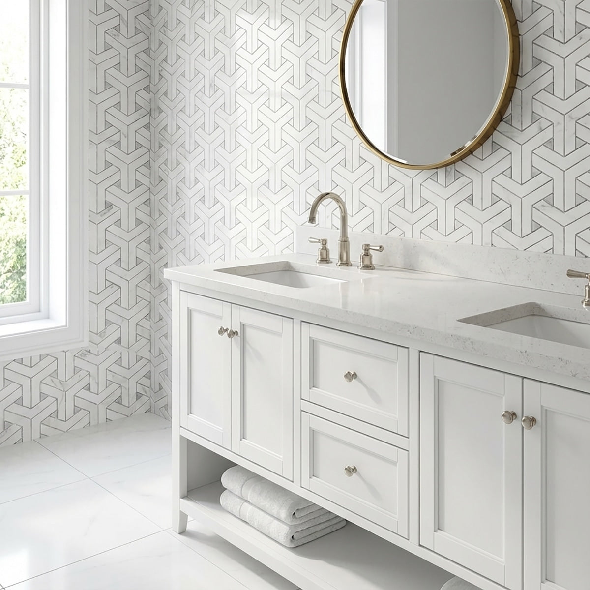 Add a touch of luxury with Bianco Dolomiti & White Carrara Polished Delta Marble Mosaic. The polished finish and delta-shaped pieces create an elegant and timeless design, perfect for accentuating walls, floors, or backsplashes. This marble mosaic adds a sophisticated element to your space, enhancing your interiors with its classic charm and refined beauty. Transform your design with the luxurious appeal of this exquisite marble mosaic.