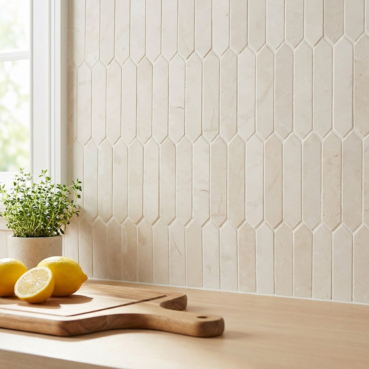The Aero Cream Honed Picket 1x4 Marble Mosaic adds a unique geometric flair to any space. The picket pattern combined with the honed matte finish highlights the creamy tones and delicate veining of the marble, creating a refined texture. Ideal for backsplashes, shower walls, or decorative accents, this mosaic brings both elegance and visual interest to modern and traditional interiors.