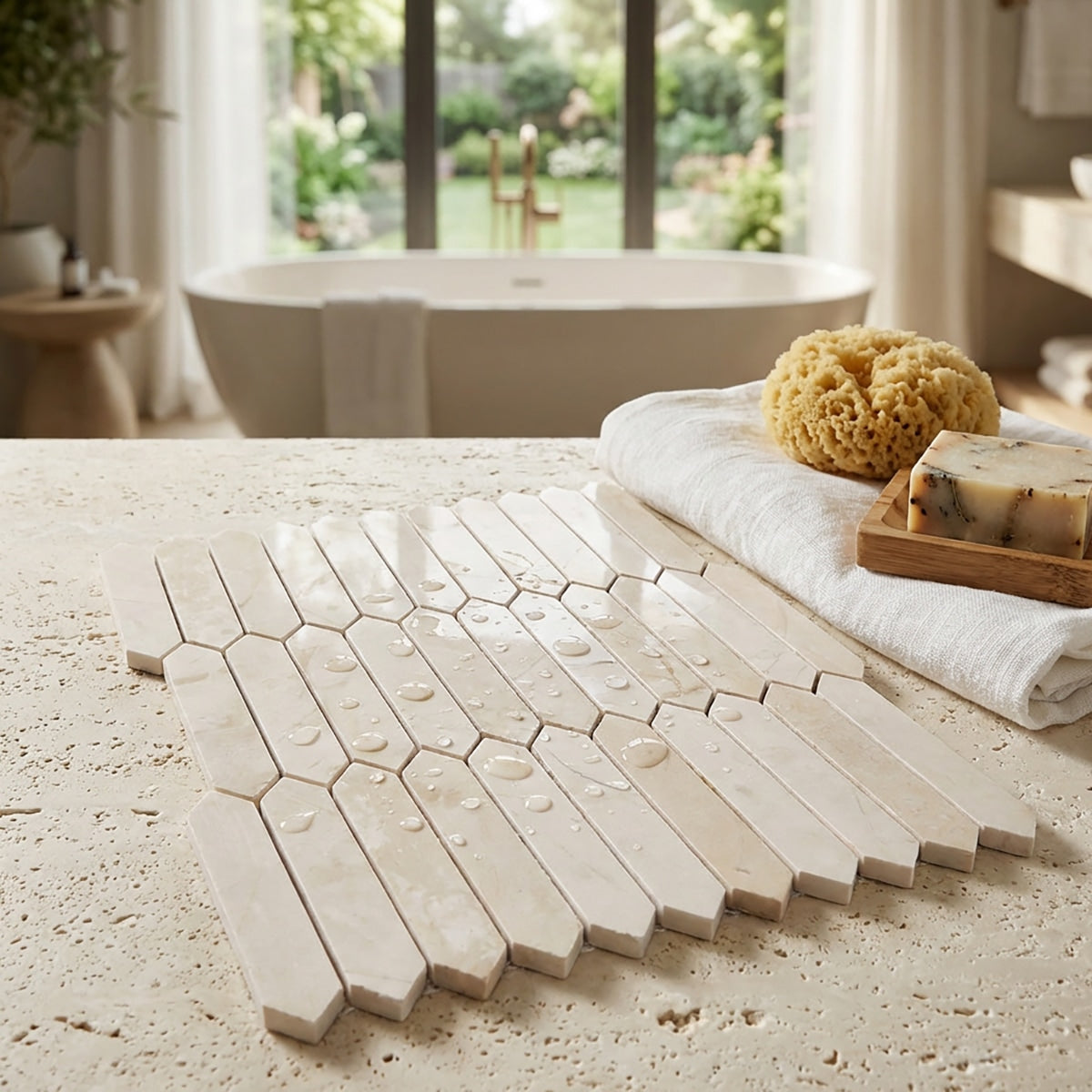 Aero Cream Honed Picket 1x4 Marble Mosaic Tile
