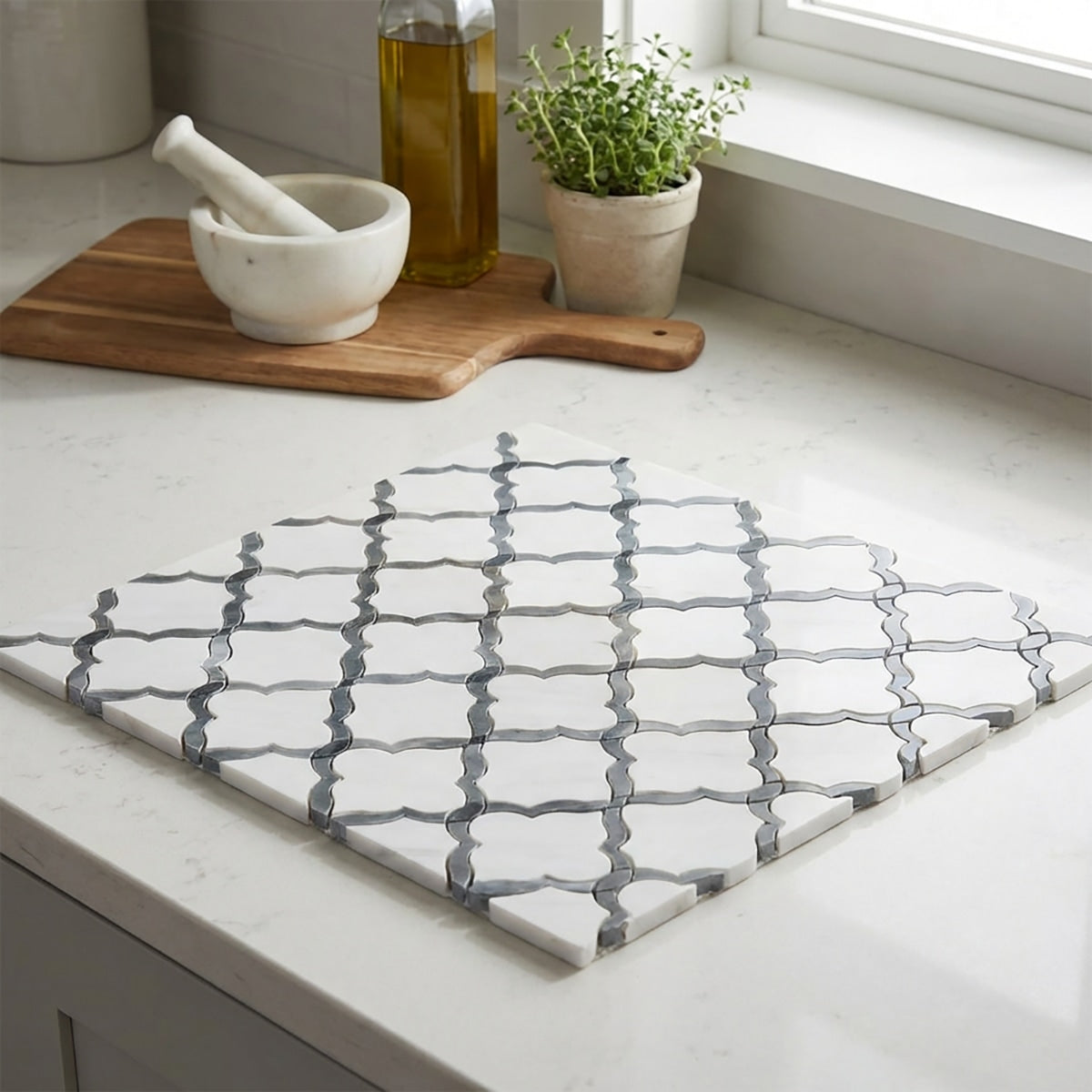 Bianco Dolomiti & Bardiglio Polished Sophia Marble Mosaic Tile