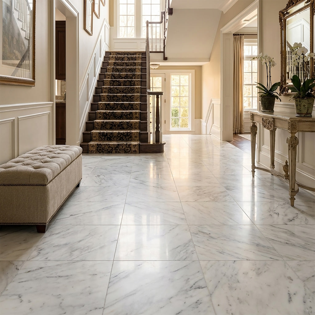 Elevate your space with the luxurious Asian Statuary Premium Polished 18x18 Micro Beveled Marble Tile. The polished finish and micro beveled edges add a touch of opulence, making it an ideal choice for floors, walls, or backsplashes. This premium marble tile embraces refined design with its sophisticated beauty and timeless appeal, perfect for both traditional and contemporary interiors. Transform your space with the luxurious charm of Asian Statuary marble.