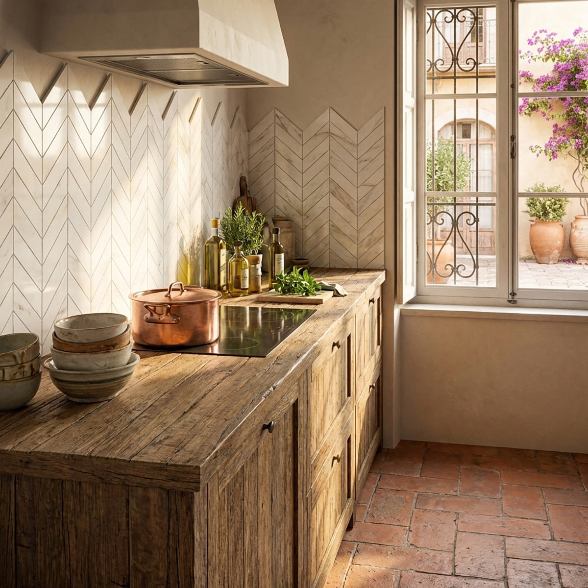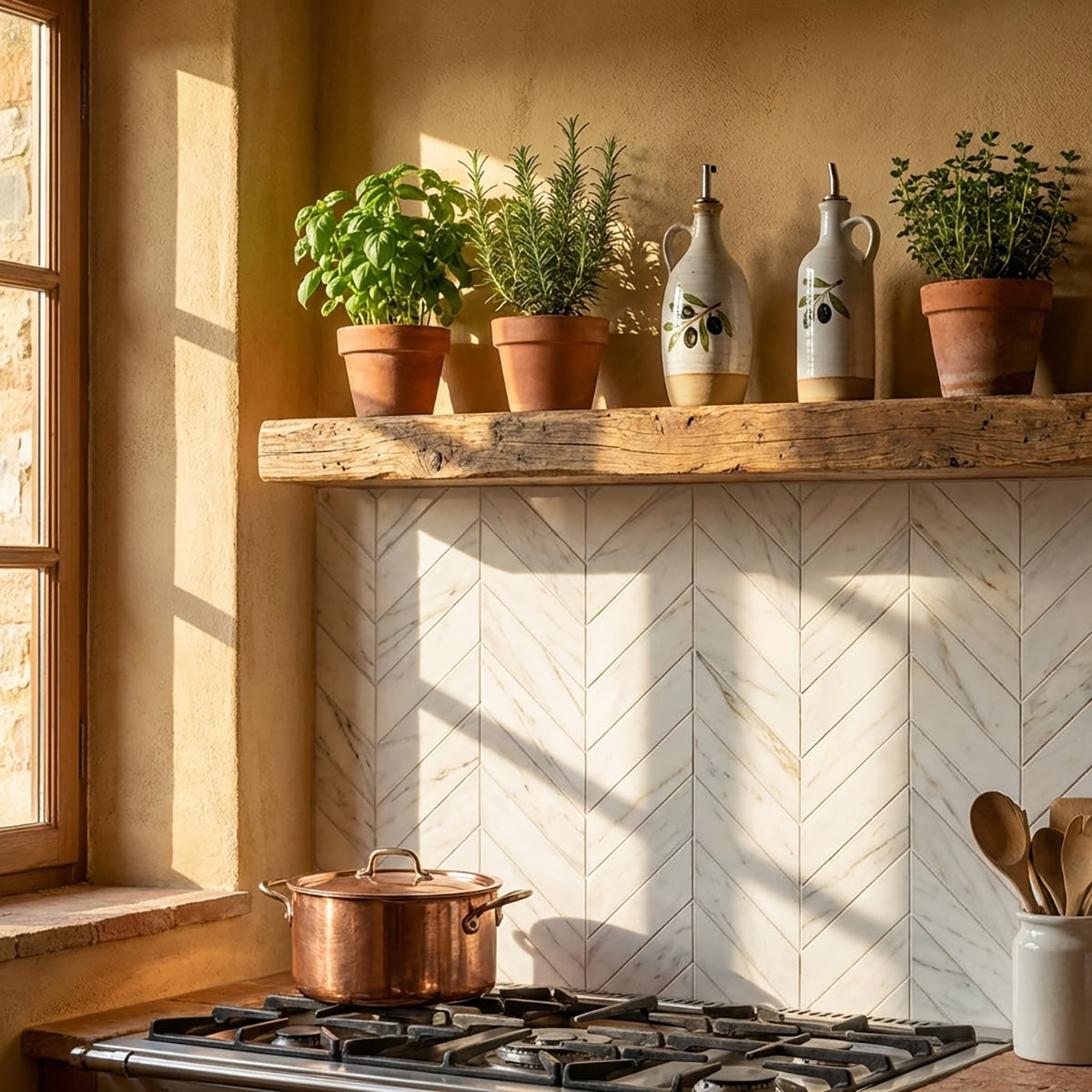 Bianco Dolomiti Honed 2x8 Chevron Marble Mosaic Tile