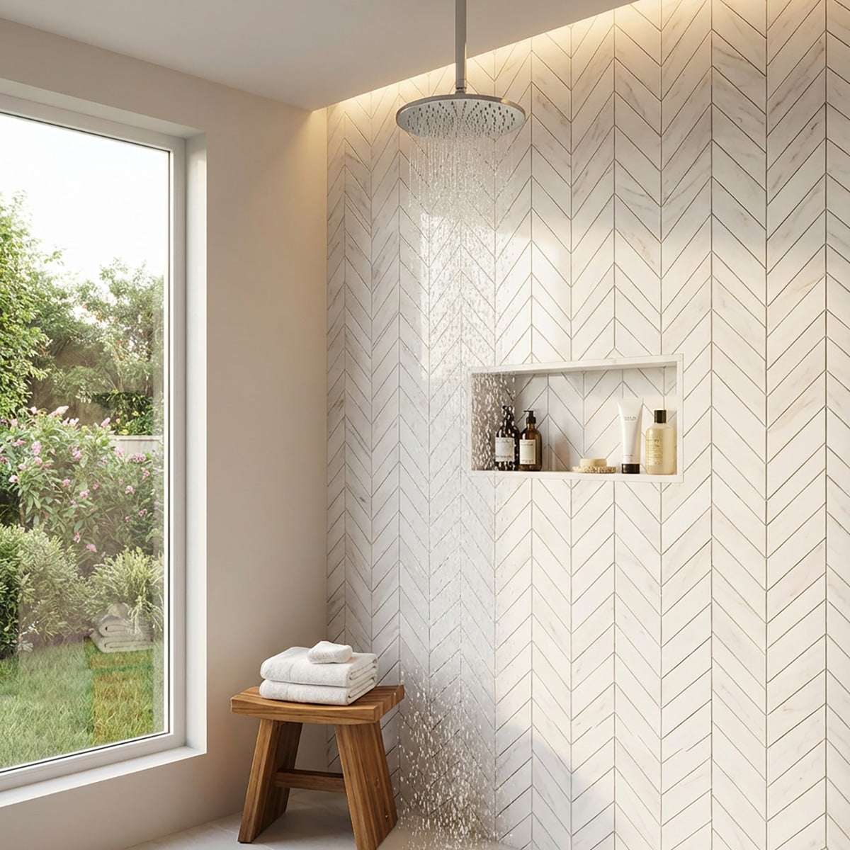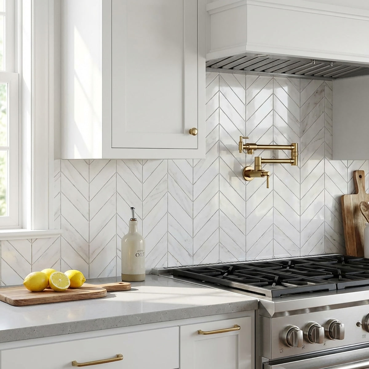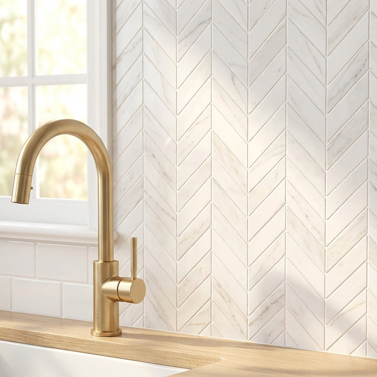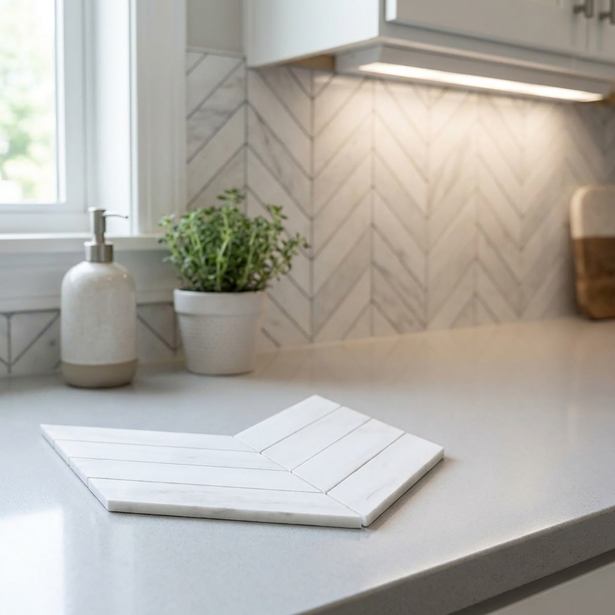Transform your space with the dynamic appeal of Bianco Dolomiti Polished 2x8 Chevron Marble Mosaic. The polished finish and elongated chevron pattern bring a sense of movement and sophistication to your walls, floors, or backsplashes. Ideal for both classic and contemporary interiors, this marble mosaic elevates your design with its stylish charm and modern elegance. Add a touch of luxury to your space with this exquisite marble mosaic.