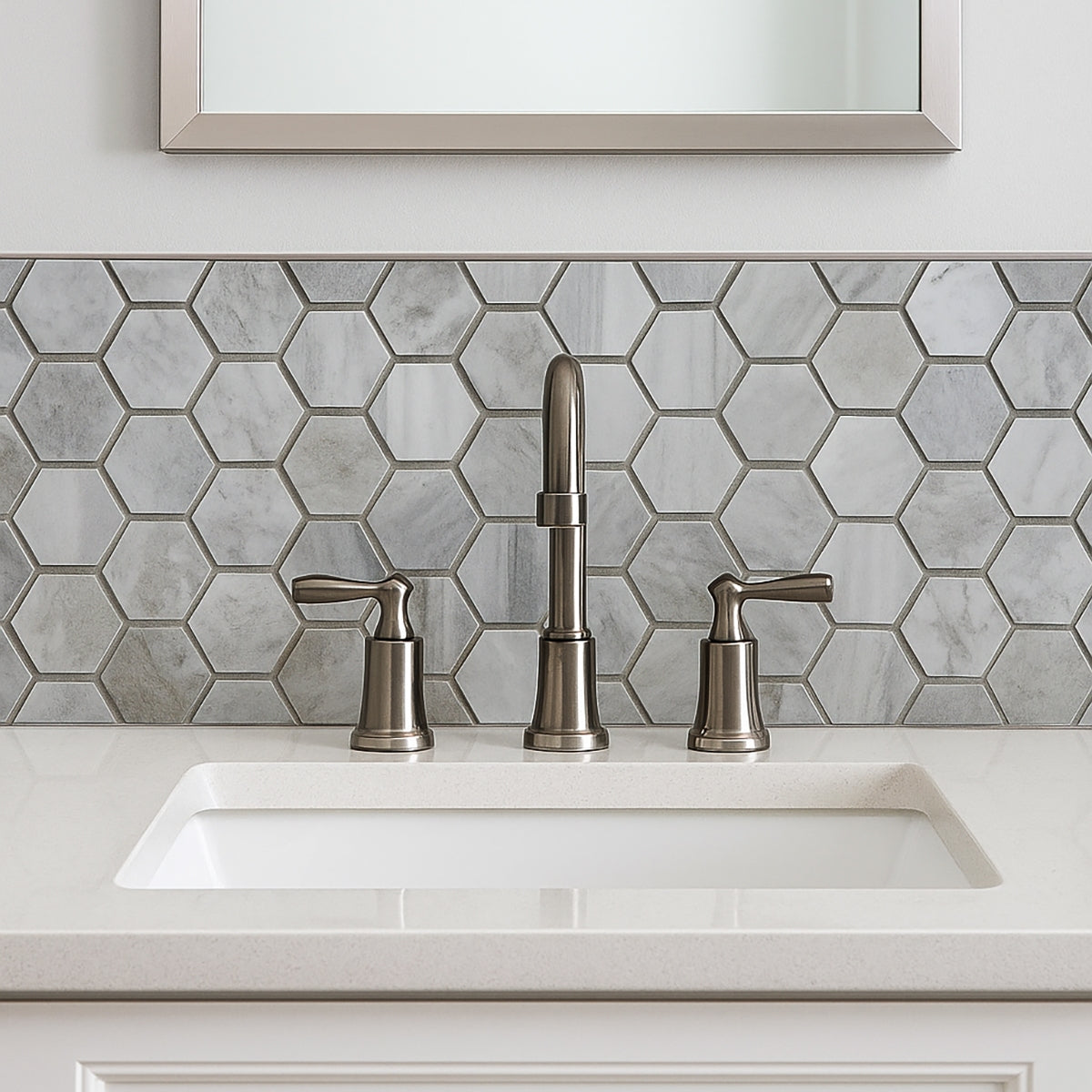 Elevate your space with the captivating allure of our Silver Diamond Glossy porcelain mosaic tile. Featuring a glossy finish and unique 2-inch hexagon shape, this mosaic tile adds visual interest to any surface. Whether used for backsplashes, shower floors, or accent walls, its elegant design enhances any interior.