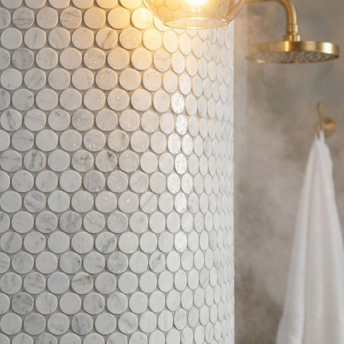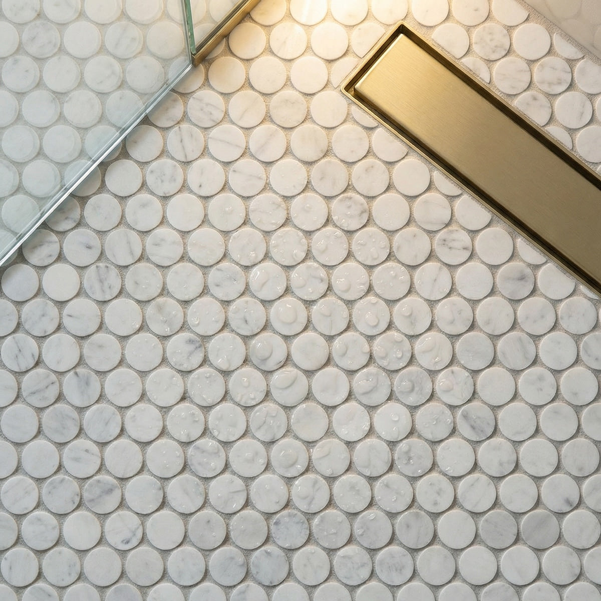 White Carrara Honed Penny Round Marble Mosaic Tile