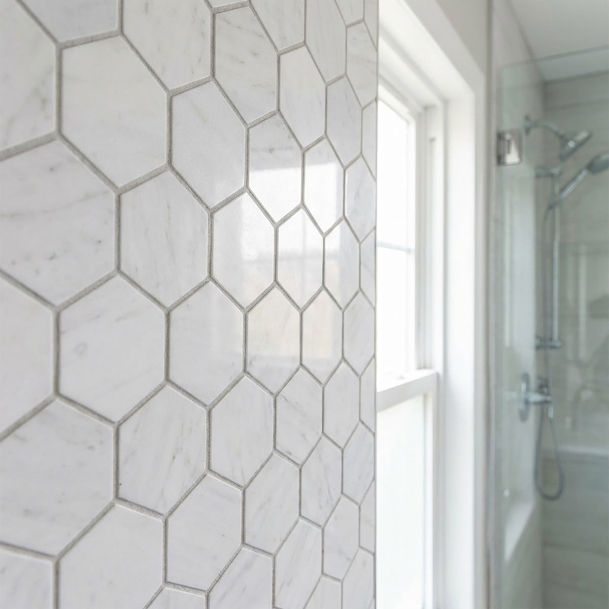 Bianco Dolomiti Honed 3 Inch Hexagon Marble Mosaic Tile