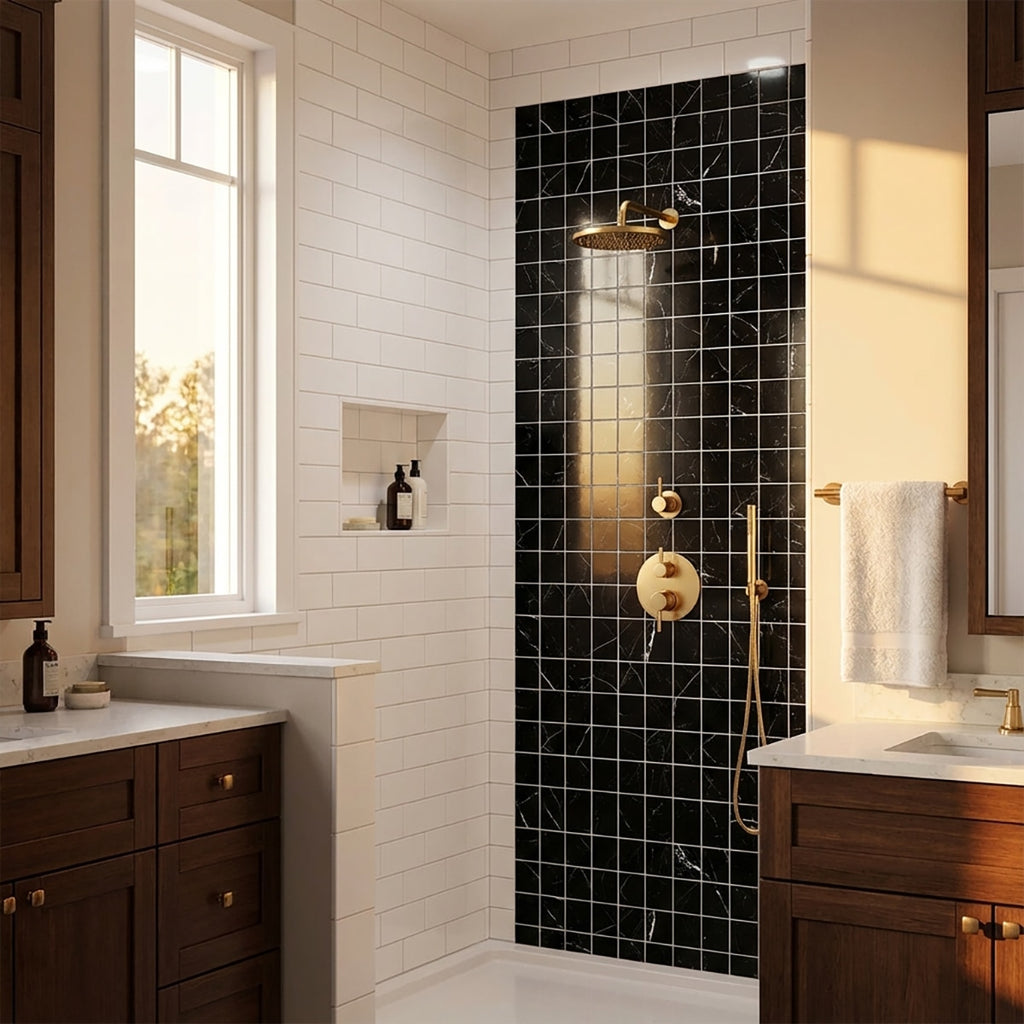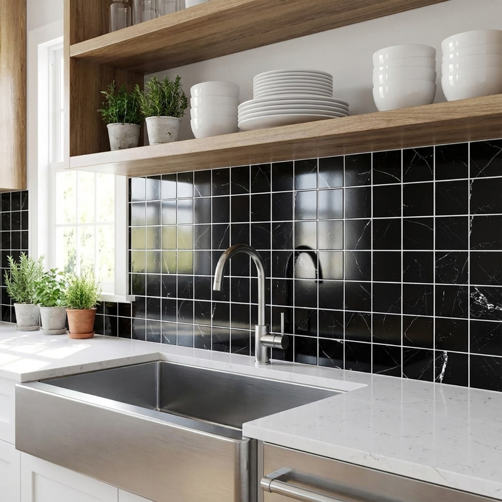 Make a bold statement with the Pietra Black Polished 2x2 Porcelain Mosaic. The polished finish enhances the deep black surface, creating a luxurious and modern appearance. Perfect for adding a touch of elegance to any interior, this mosaic elevates your space with its striking beauty and contemporary charm. Transform your interiors with the sleek and sophisticated appeal of this polished porcelain mosaic.