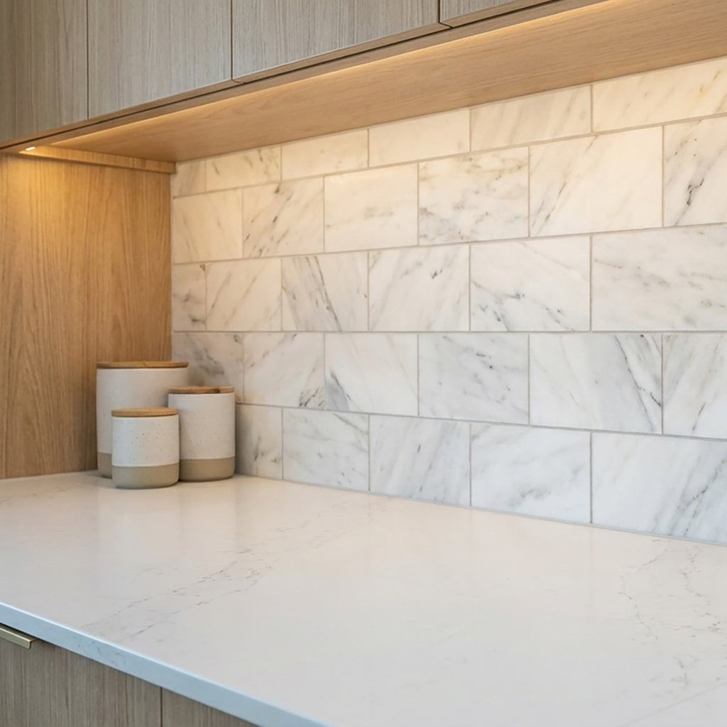 Transform your space with Calacatta Honed Beveled Marble Tile. Featuring a luxurious honed finish and refined beveled edges, this 3x6 inch tile adds depth and elegance to any interior. Perfect for creating stunning backsplashes, shower walls, and more, it combines versatility with timeless appeal. Elevate your design aesthetic with this sophisticated marble tile, ideal for both modern and classic interiors.